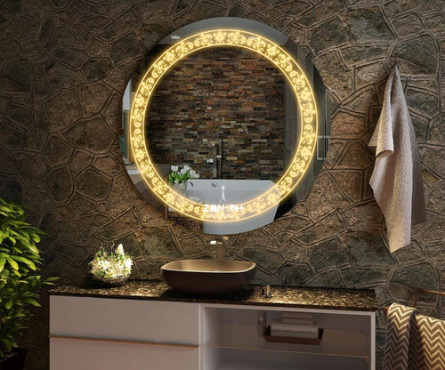 Relief-Etched Applique Mirror | Precision Glass-Art Design | Smart Multi-Tone Wall-Mounted LED Vanity -